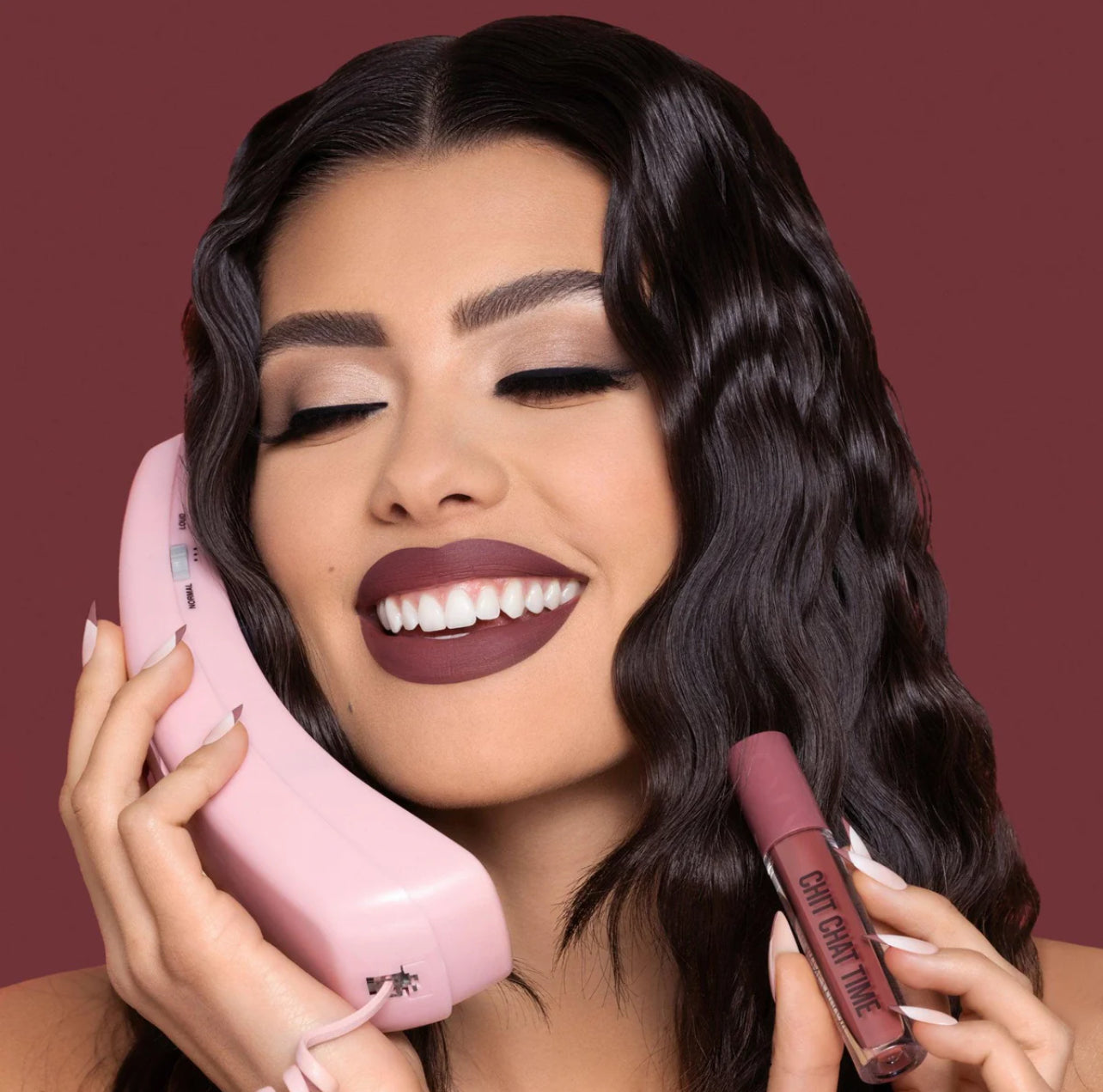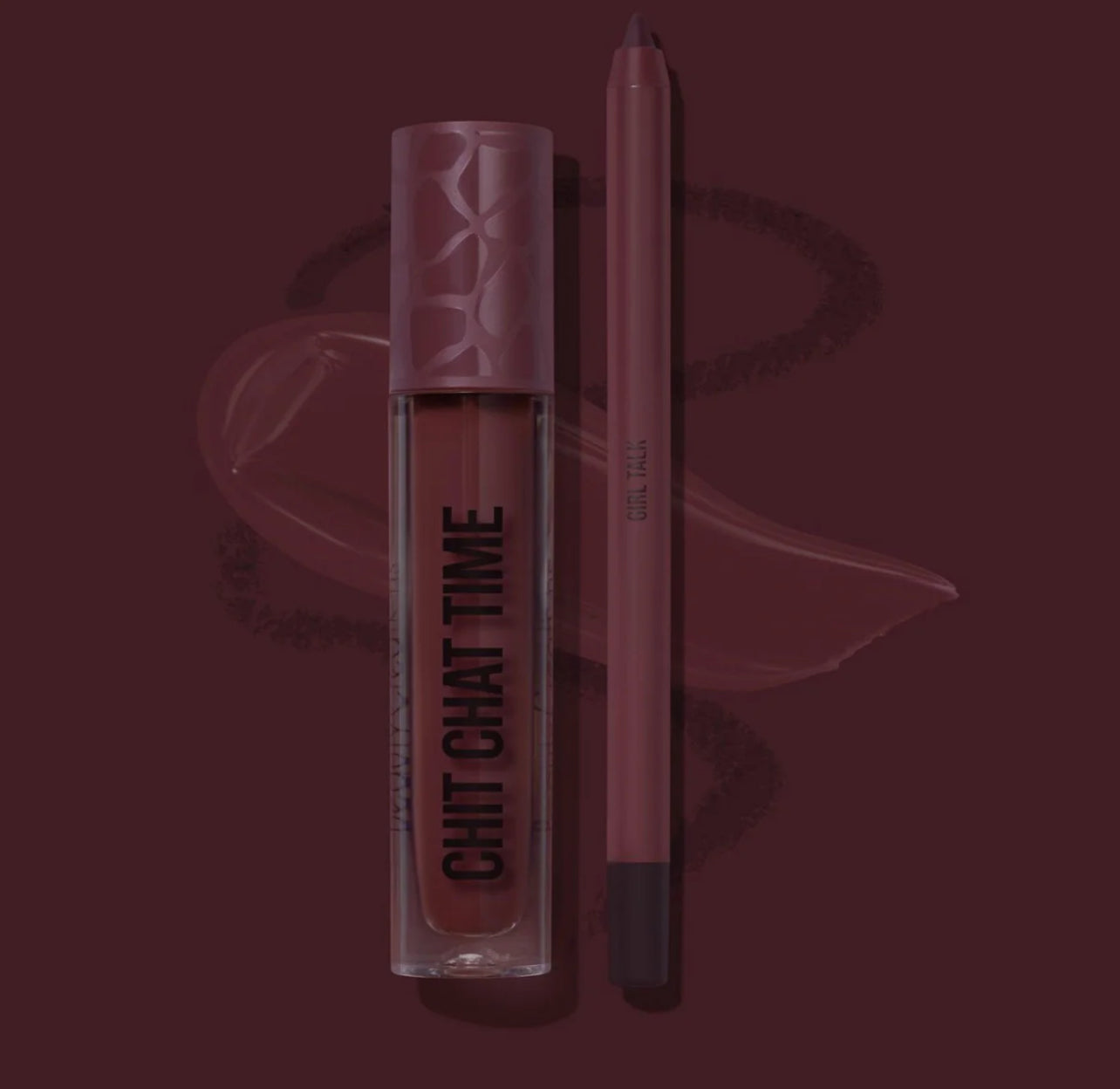 CHIT CHAT TIME: Ring Ring! Bestie – It’s Us! Today’s topic is Chit Chat Time, a statement lip duo! Composed of a matching muted burgundy liquid matte lipstick and gel lip liner combo. This duo is a powerhouse of intense pigmentation, lightweight comfort, creamy perfection and fun! Featuring our first ever printed and textured packaging so you can not only wear but store in style too! Grab yours today and have everyone asking you what's your availabilippy?